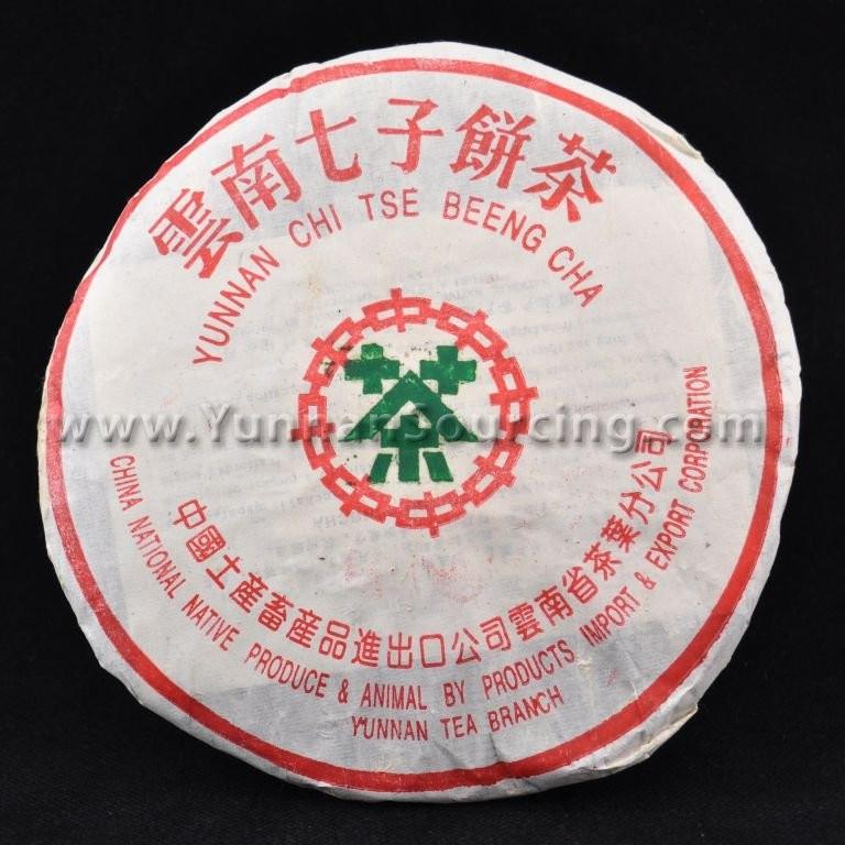 A special CNNP for Malaysia export ripe tea cake. Pressed entirely from 1st grade, Te Ji and broken Gong Ting grade Menghai area ripe tea. This tea cake features old green mark on old style pin-stripe offset paper. Nei Fei is not pressed into cake, as this inventory was to be sent to Malaysia where the wrapper was to be changed. Dry-stored in Kunming for 15 years this has developed an incredibly complex flavor and mouth-feel. The tea need only be washed once before drinking. The aroma is of cacao and fruit with some spiciness. The tea enters the mouth and fills it with pungent aroma and thickness. The taste also belies cacao and something spicy. The astute drinker will notice a mouth-watering effect accompanied by a protracted feeling and flavor in the mouth long after drinking. This pungent cha qi and flavor reminds me of raw pu-erh. Some people may experience a subtle drunken state after drinking this tea. Pleasant and clean aged tea, very rare and unique. Sample available! Please try before buying a whole cake! Please note: This is a very old cake and as such there are often tears in the wrapper and some breakage along the edges! Please also be aware that the paper type for these wrappers has two types. A thinner paper, and thicker paper. There is no difference in the tea! Cake weight is approximate and may not be the full weight listed. We cannot weigh each cake and create a separate listing for each. The weight listed is the weight the cakes were when they were pressed, not necessarily what they are now. When you purchase a cake, you are purchasing the cake as a whole, not a certain number of grams, and we will not issue refunds or credits or accept returns if your cake is less than the amount listed. Net weight: 357 grams per cake